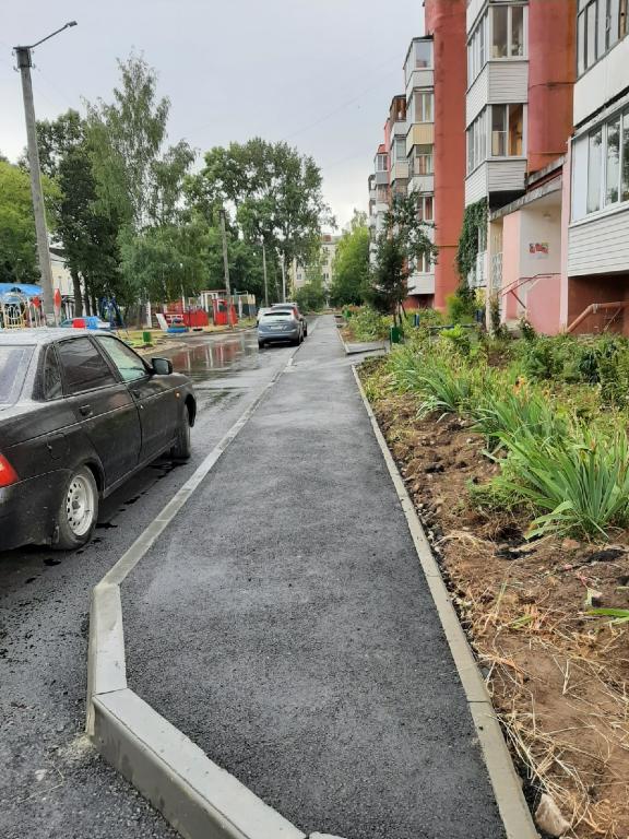 Здесь выполнен отвод воды, установлен новый бортовой камень, восстановлено асфальтобетонное покрытие проездов и обустроены новые тротуары.
