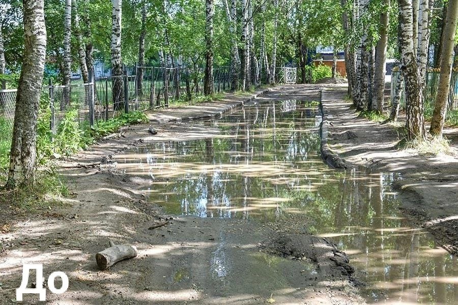 На данный момент спилены все аварийные деревья, убрана территория, отведена вода. Теперь очередь за дорогой. Здесь выровняют проезжую часть и сделают пешеходную зону. На третьем этапе ожидается благоустройство и посадка газона.