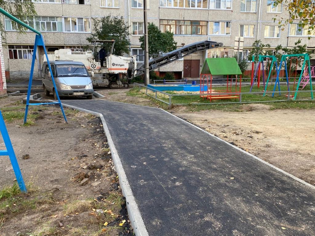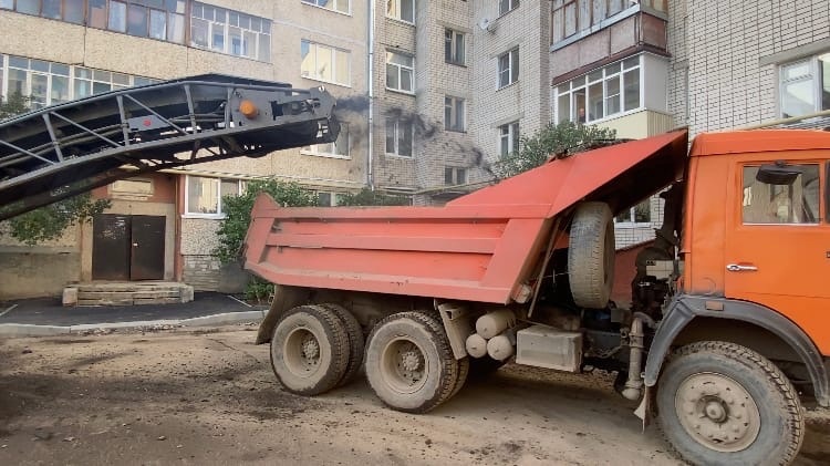 Здесь уже привели в порядок пешеходную зону, сейчас дорожники фрезеруют старое покрытие на дворовых проездах. Совсем скоро здесь уложат новый асфальт.