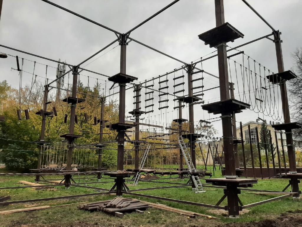 Работы по оборудованию верёвочного городка в парке культуры и отдыха Йошкар-Олы подошли к завершающей стадии.