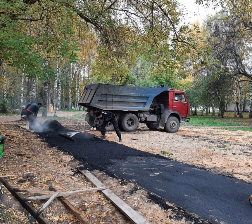 Сейчас здесь монтируют канаты, дорожки, качели и лестницы и асфальтируют дорожки.