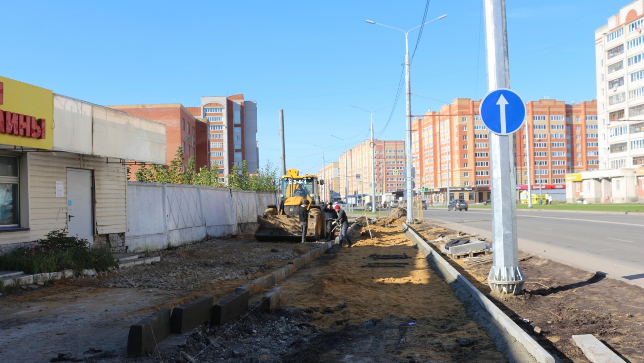 На улице Мира в Йошкар-Оле на участке возле ТЦ «Еврокомфорт» строят новый тротуар.