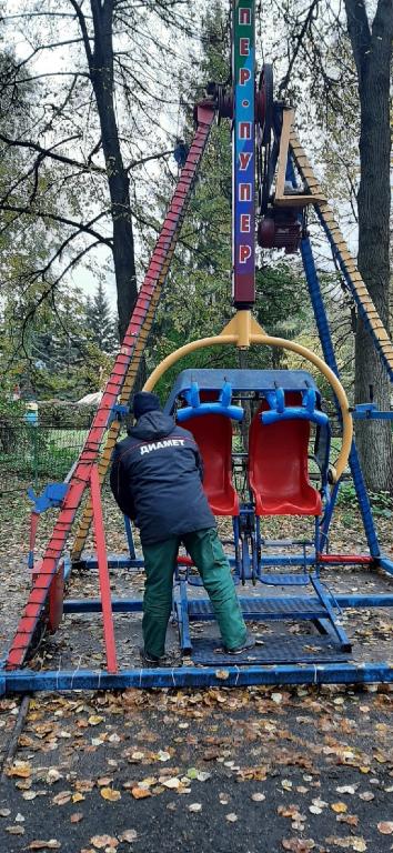 В то же время специалисты технического отдела эксплуатации проводят техническое освидетельствование аттракционов. Если возникает необходимость, на каруселях проводят замену шпал. Также они занимаются косметической покраской столярного цеха и постоянной уборкой территории городка аттракционов.
