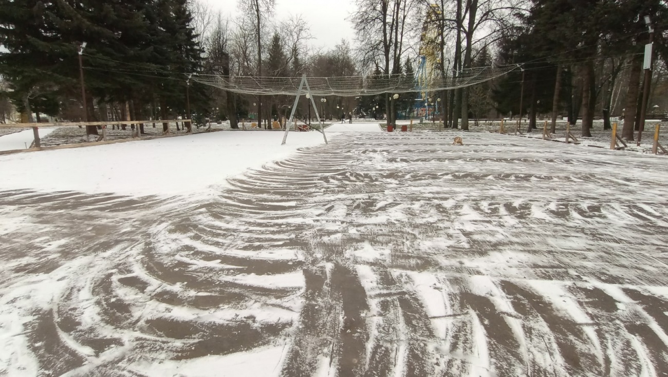 Приятная новость и для любителей активного отдыха. В этом году в парке вновь зальют каток. Уже сейчас возле памятника В.И. Ленину начали сборку и установку коробки.