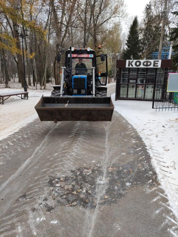 В парке культуры и отдыха хозяйственные работы не прекращаются и в холодный сезон. Регулярно здесь расчищают территорию от снега. В это же время технический отдел эксплуатации проводит замену дверных ручек кабин на аттракционе «Колесо обозрения», а также продолжается строительство крыши здания автогаражей.