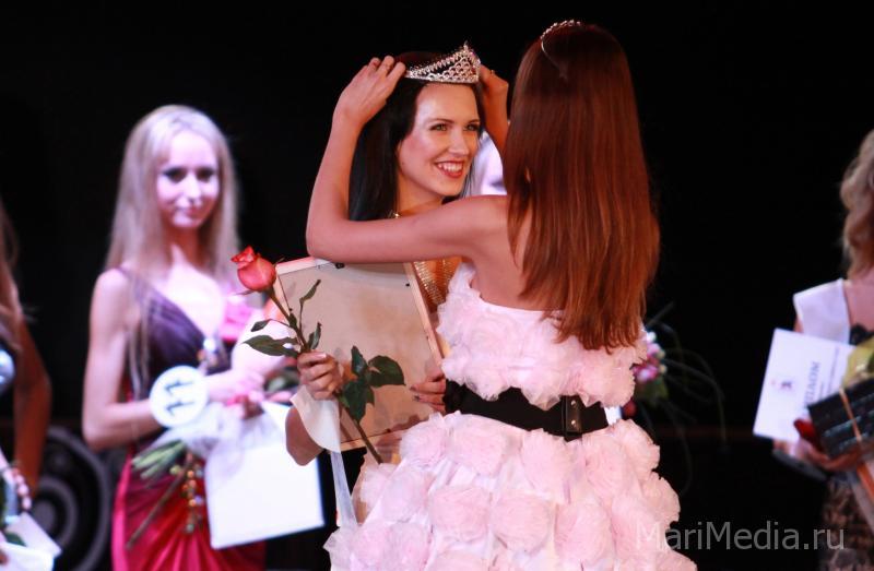 В эти минуты на сцене ДК им. ХХХ-летия Победы корона и титул самой красивой йошкаролинки от Татьяны Козуто переходит к Наталье Петровой.