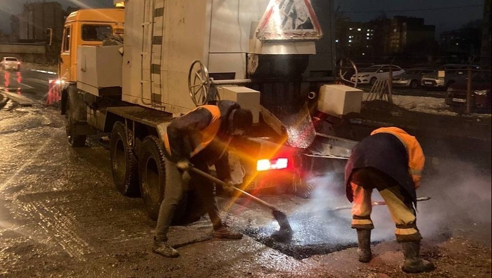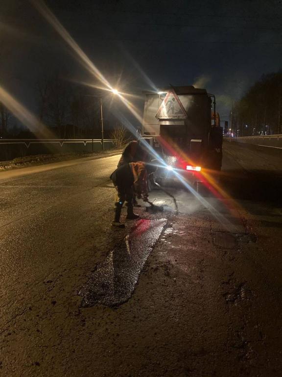 Сегодня ночью дорожники МУП «Город» заливали ямы на Кокшайском проезде, улицах Транспортной и Подольских курсантов.