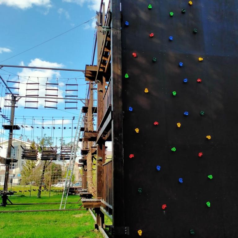 В конце мая откроют и верёвочный парк. Он включает три уровня сложности для всех возрастов и рассчитан, как на маленьких, так и взрослых посетителей. Сейчас идут подготовительные работы и завершение техобслуживания.