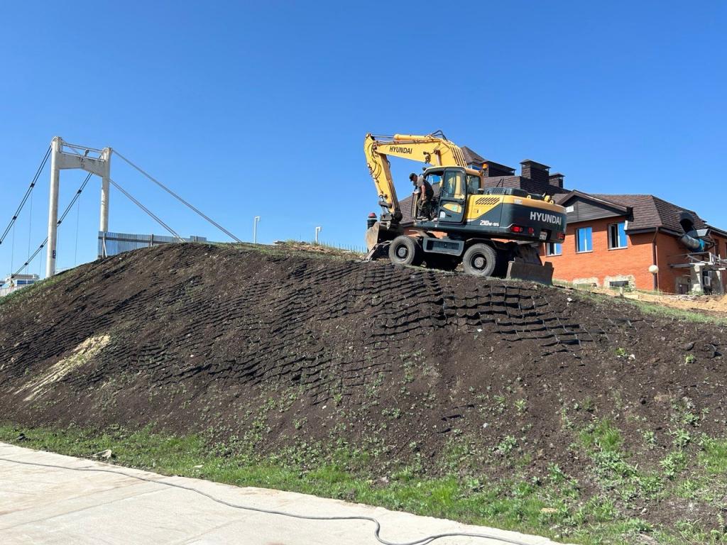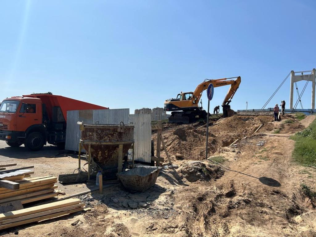 В преддверии открытия пляжного сезона для комфорта горожан ведутся работы по ремонту ступеней, которые ведут к Вантовому мосту.