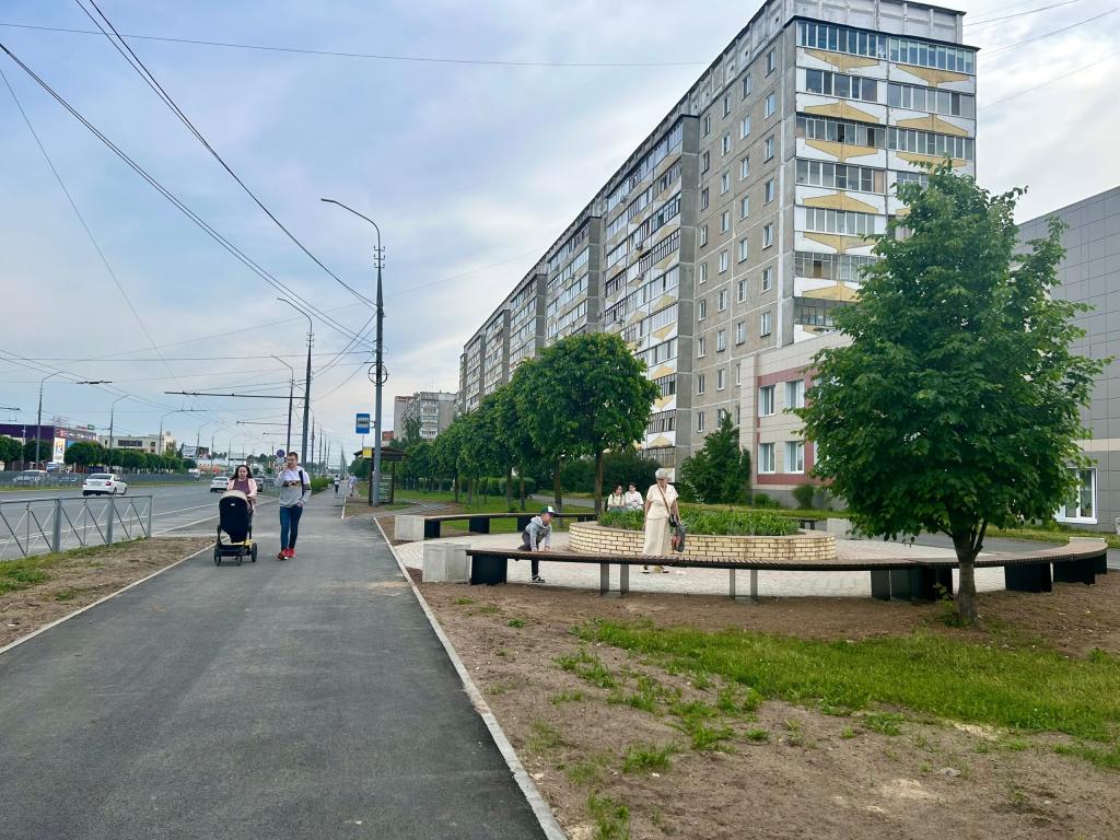 Качественные изменения уже налицо. Здесь уже появились комфортные заасфальтированные тротуары, велодорожка. Установлены малые архитектурные формы и оборудовано несколько удобных точек отдыха. Также на зелёной зоне сделали цветники. На прошлой неделе в них высадили цветы, которые стали настоящим украшением этой территории.