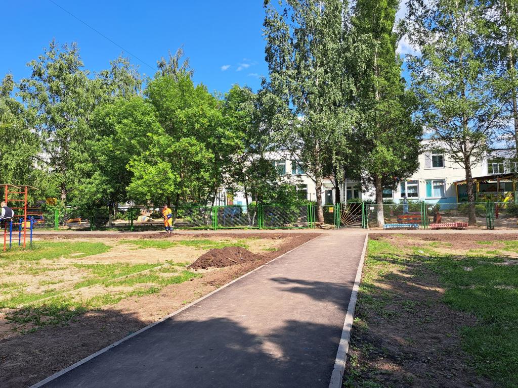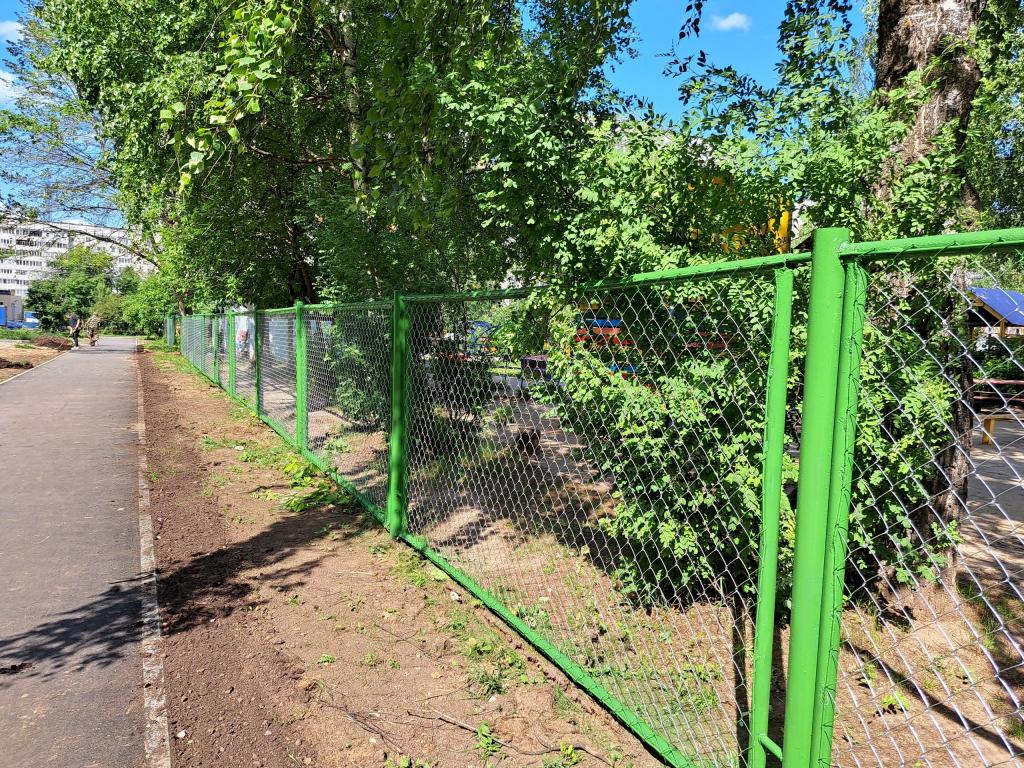 Сейчас подрядчики занимаются восстановлением газонов. Также ремонтируют ограждение детского сада.