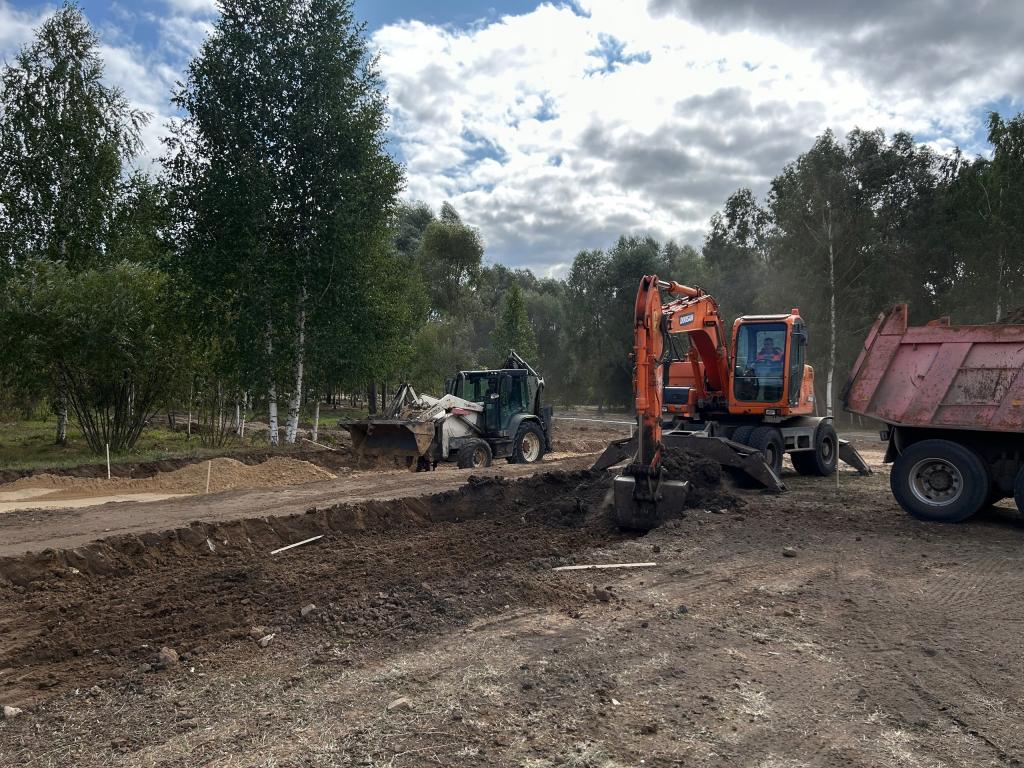 Как известно, прежний подрядчик сорвал объект по срокам. Поэтому благоустройством теперь здесь занимается другая организация — МУП «Город». Пока позволяет погода, каждый день на территории трудятся около 50 человек и 8 единиц спецтехники. Новому подрядчику нужно выполнить большой объём работ. Чтобы всё успеть, даже продлён рабочий день.