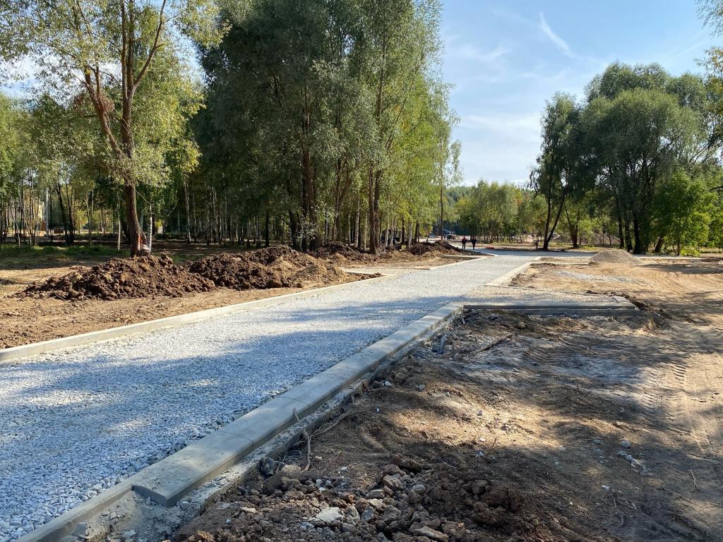 В настоящее время на объекте практически завершены работы с зелёными насаждениями, готовят основание под асфальтирование, обретает очертания и дорожно-тропиночная сеть.