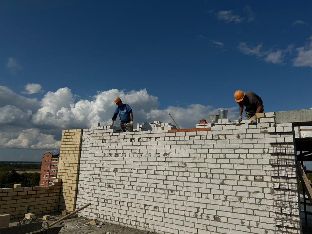 В настоящее время подрядная организация приступила к возведению девятого этажа. Параллельно проводятся внутренние штукатурные работы. До 6 этажа смонтированы все инженерные коммуникации.