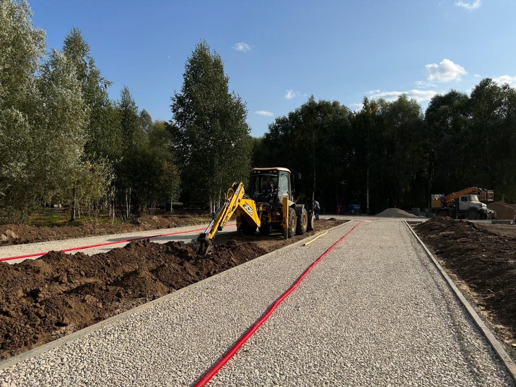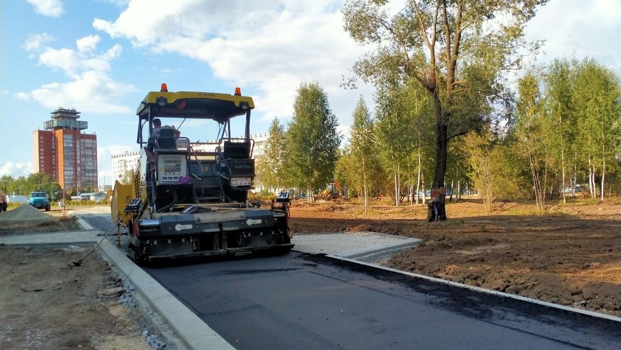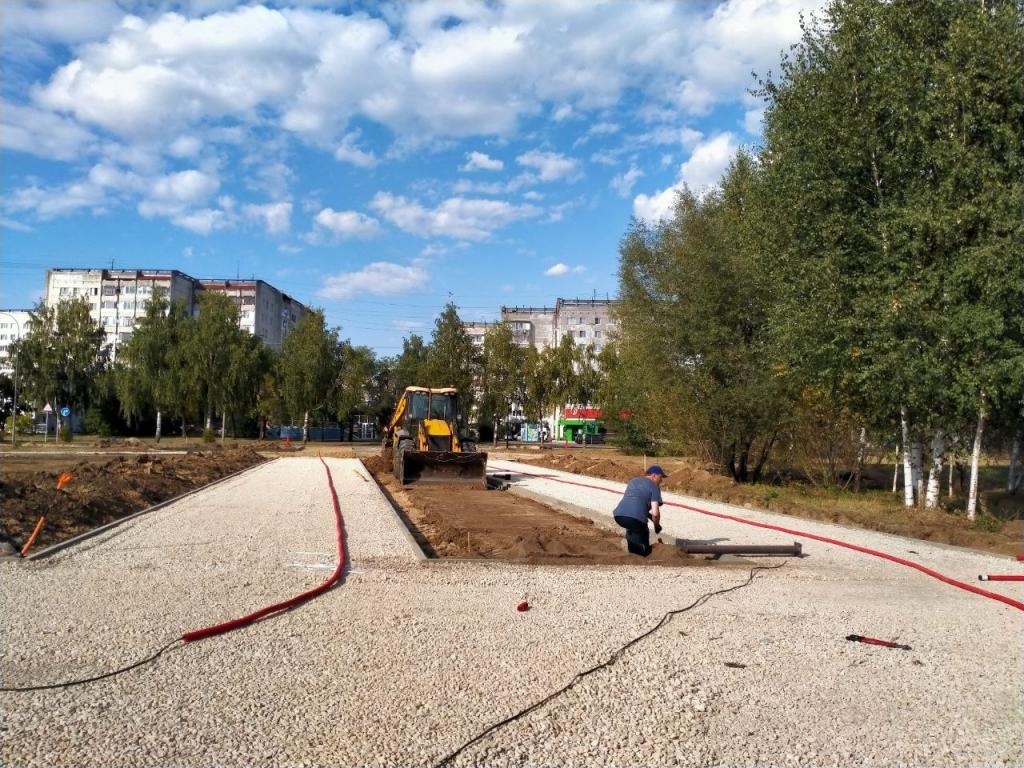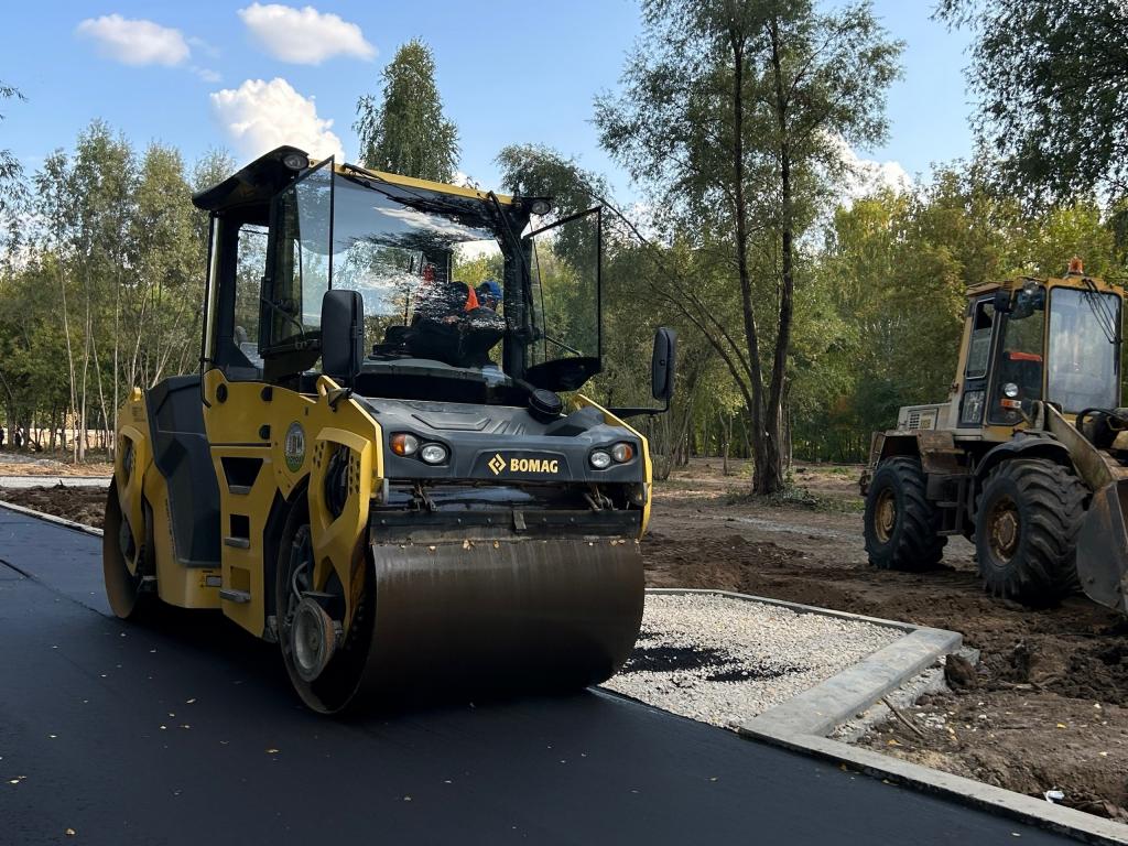 На центральной аллее сотрудники МУП «Город» завершают укладку первого слоя асфальтобетонного покрытия. Параллельно рабочие занимаются отсыпкой песком и щебнем тротуарной сети парка. Также ведутся работы по устройству газонов.