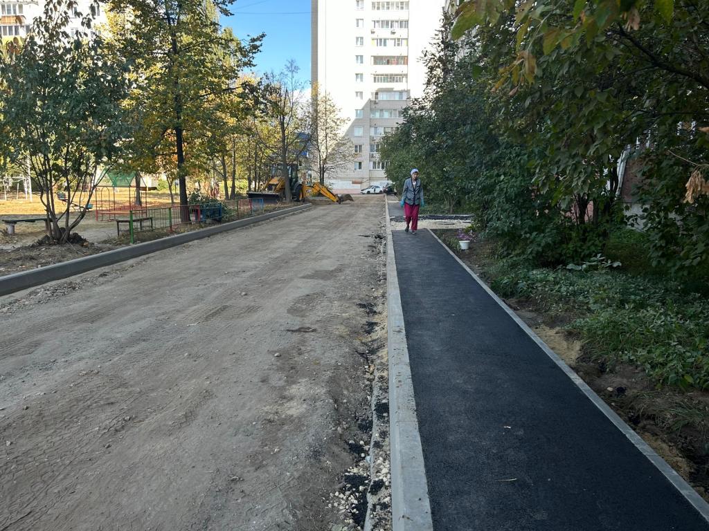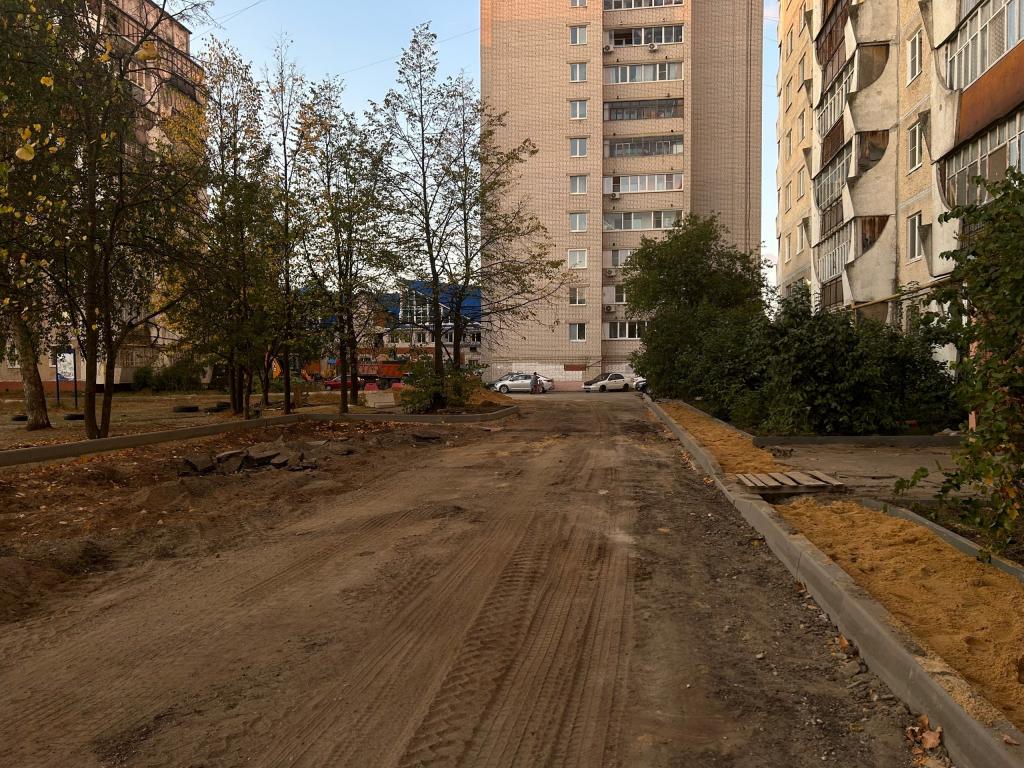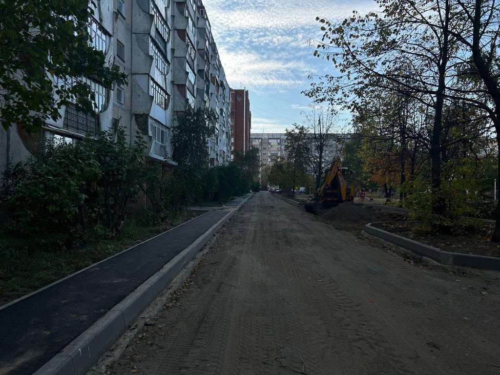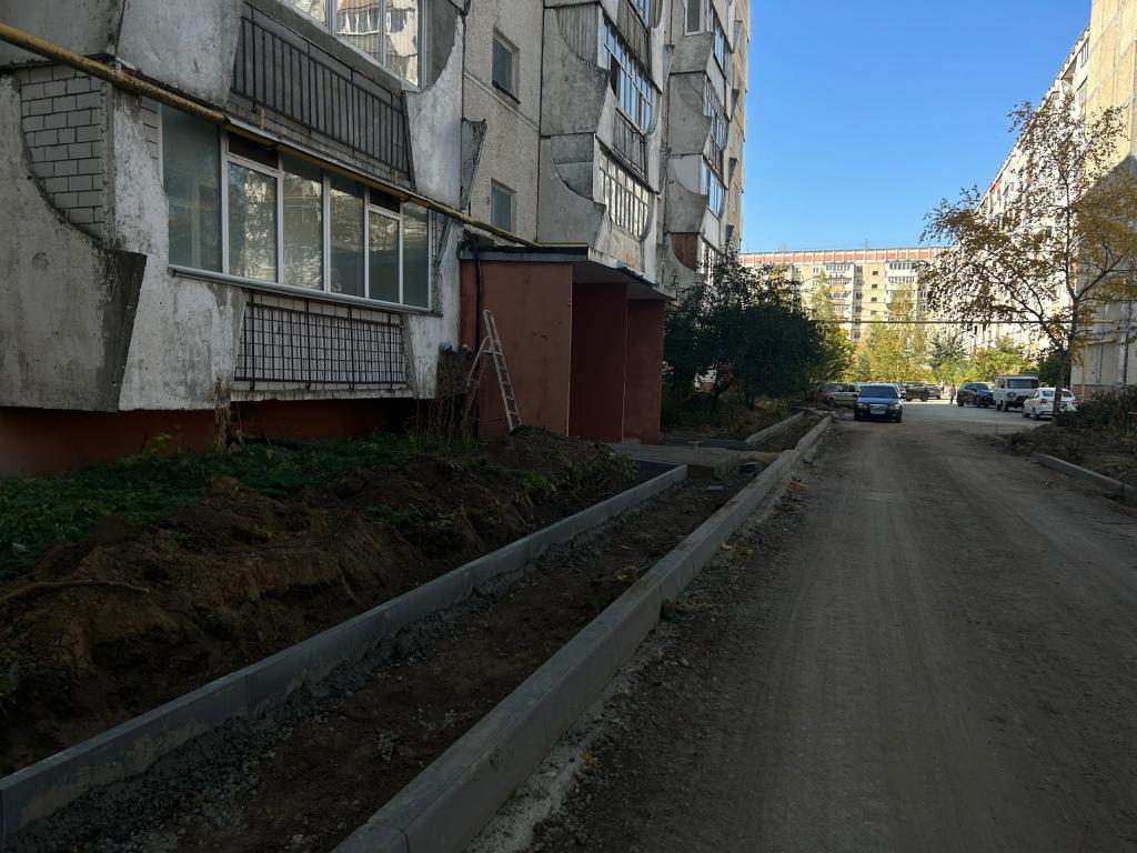 Здесь уже обновили тротуары, установили поребрики, проложили новый тротуар, который ведёт к школе № 1. Теперь взялись и за парковки. Предстоит также уложить новый асфальт на дворовых проездах.