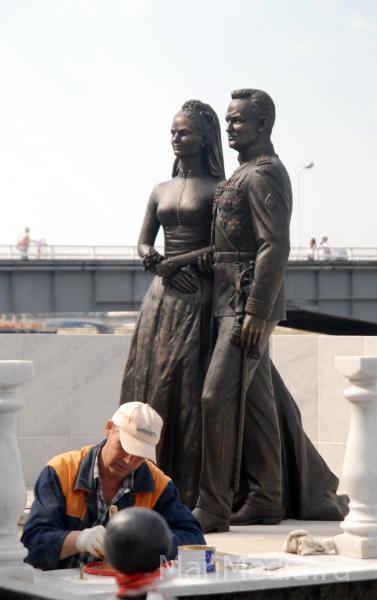 У здания строящегося нового загса на Патриаршей площади появятся бронзовые двухметровые «Молодожены», молодой человек в военном костюме держит за руку девушку в развевающемся на ветру платье. Как нам рассказали в научно-производственном центре по охране памятников при республиканском Минкультуры, автор проекта Андрей Ковальчук. Данная работа скульптора стоила 7 миллионов рублей. Торжественное открытие памятника состоится завтра в 14.30.