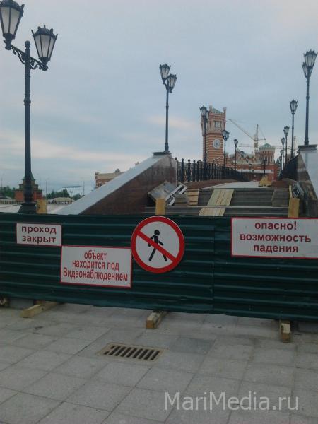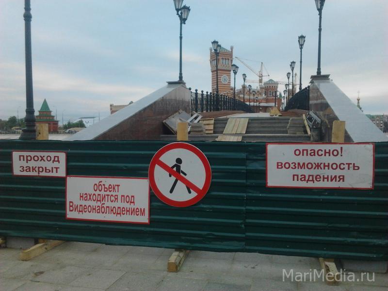 Патриаршая площадь опять оказалась временно отрезана по прямой от центра города. Мы связались со специалистами ГУП РМЭ «МостРемстрой», чтобы выяснить, почему закрыто движение по пешеходному мосту. Как выяснилось, он просто не был доделан и функционировал в тестовом режиме, не представляя никакой опасности для передвижения по нему людей. Сейчас специалисты приступили к работам по завершению его строительства. Не исключено, что мост будет пущен в эксплуатацию уже в конце этого месяца.