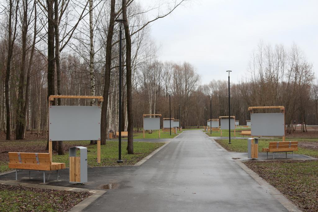 На территории парка выполнена большая часть работ I этапа благоустройства: заасфальтированы пешеходные дорожки, обустроены газоны, посажены молодые деревья, установлены лавочки, урны, качели, а также информационные стенды, на которых в дальнейшем будет располагаться информация о каждом районе нашей республики.