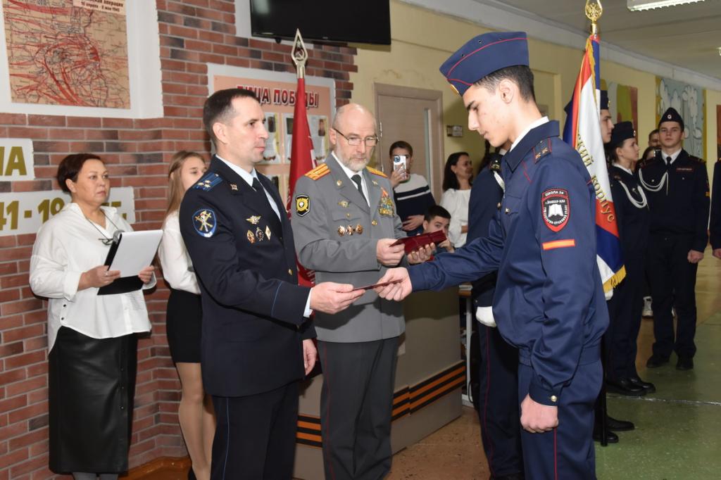 Заместитель министра внутренних дел по Марий Эл полковник юстиции Константин Карпов поздравил кадетов и вручил каждому удостоверение.