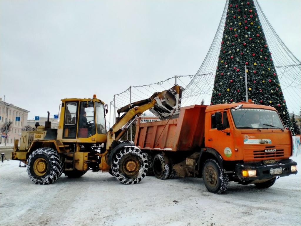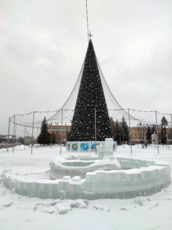 Возле главной ёлки вывозят снег и устанавливают детский ледовый лабиринт. Также площадь украсят светящиеся фигуры Деда Мороза, Снегурочки, северного оленя и Снеговика.