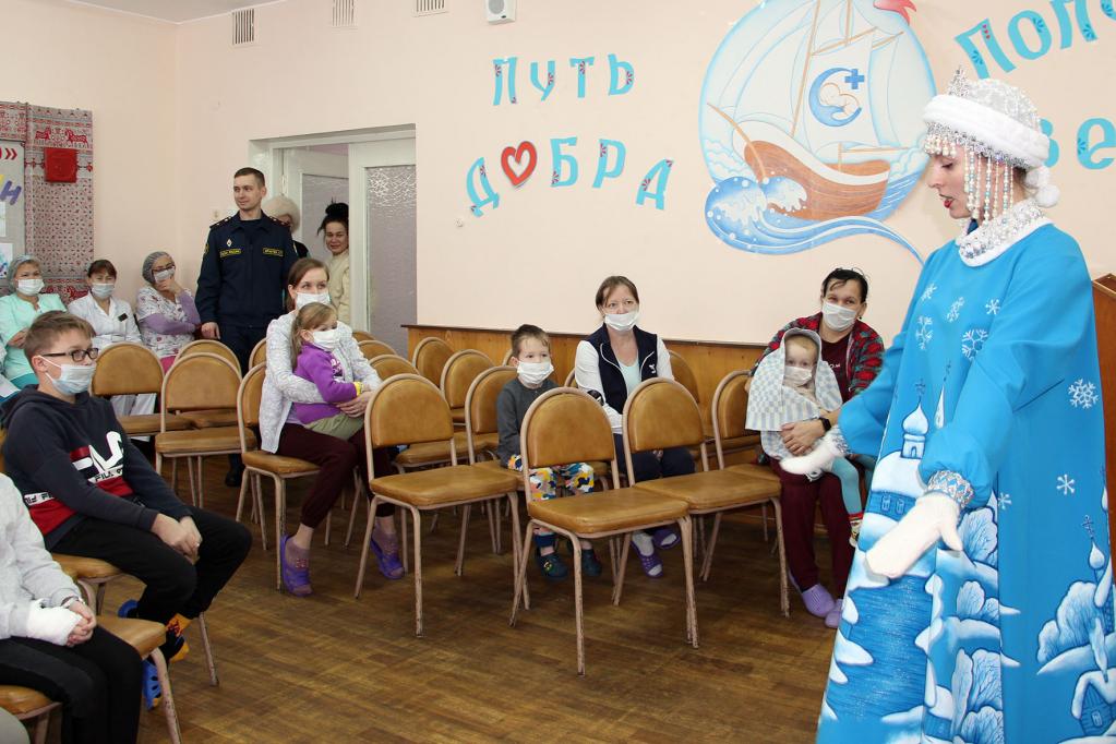 Вместе с представителями колонии-поселения пациентов навестили и новогодние зимние персонажи — Снежная королева, Зимушка-зима и Снежинка, которые показали небольшое костюмированное представление. Ребята в свою очередь тоже порадовали гостей стихами и песнями.