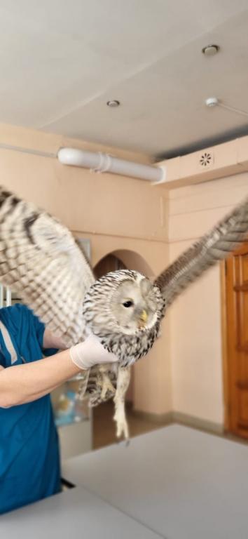 На приём в Йошкар-Олинскую горСББЖ принесли необычного пациента. Как оказалось, длиннохвостая неясыть попала в беду. Птицу осмотрел главный ветеринарный врач станции Сергей Тарасов.