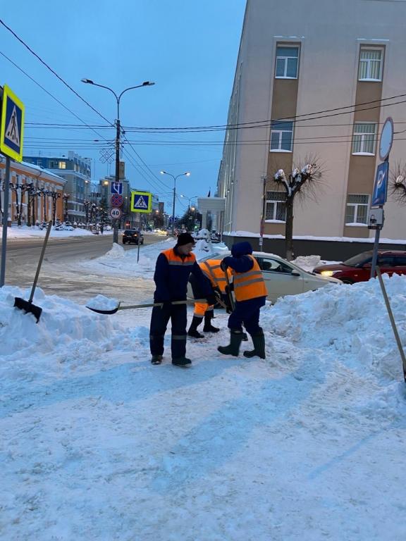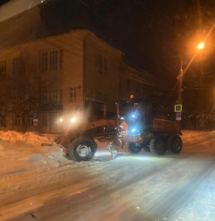 Этой ночью вывозили снег с ул. Кремлевской, б. Победы, Центрального моста. Проводили грейдирование по ул. Палантая, расчищали пешеходные зоны по ул. Зелёной, Транспортной.