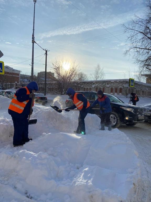 В Йошкар-Оле к расчистке снега подключились школьники и родители.
