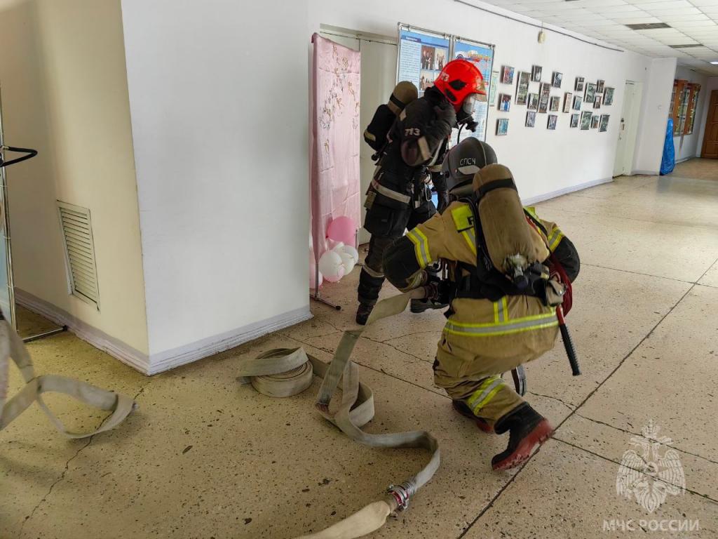 Согласно вводной, условное возгорание началось в 15:00 в библиотеке на первом этаже из-за короткого замыкания электропроводки. По легенде учений огонь стал быстро распространяться, возникло серьёзное задымление помещений.