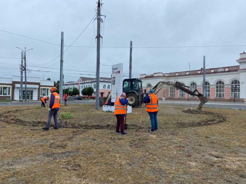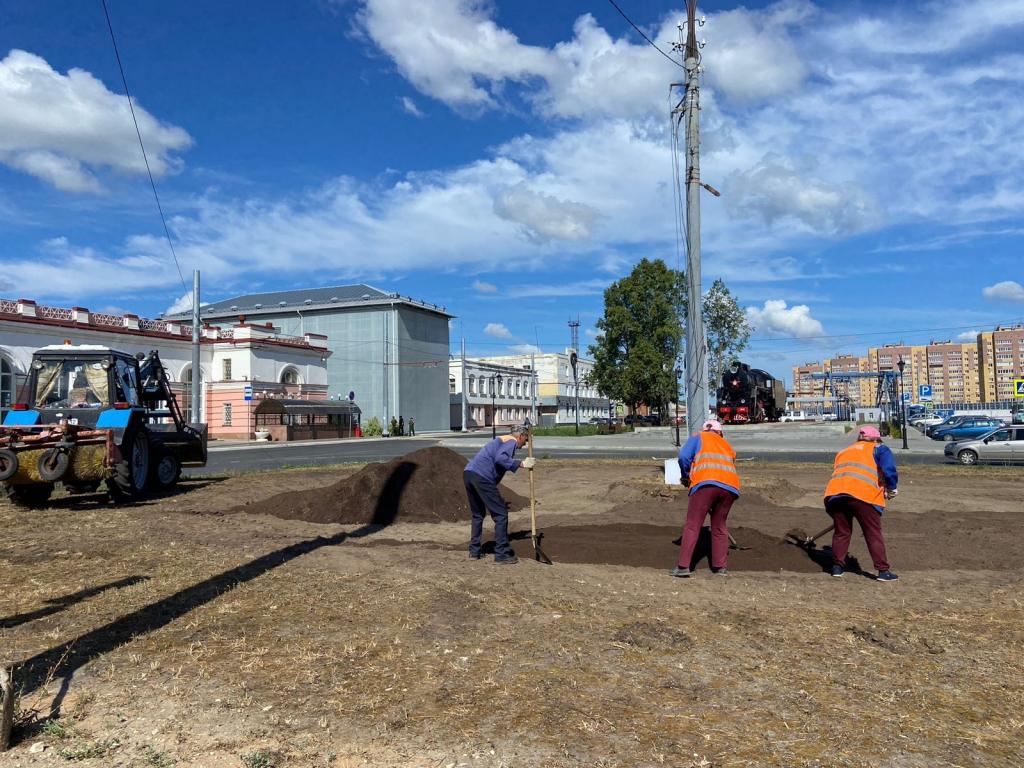 Сегодня около железнодорожного вокзала ведутся работы по созданию «цветущего букета».