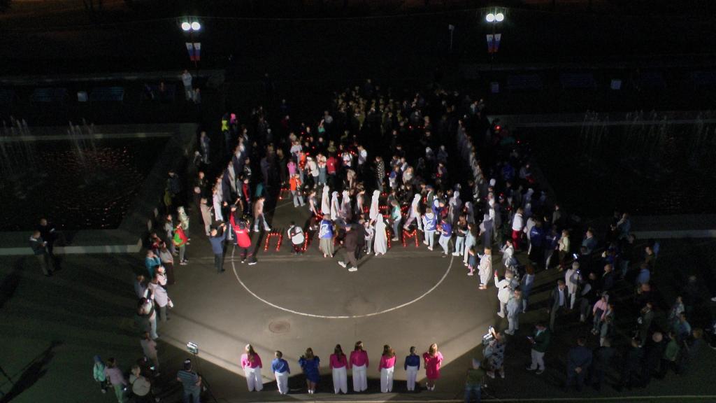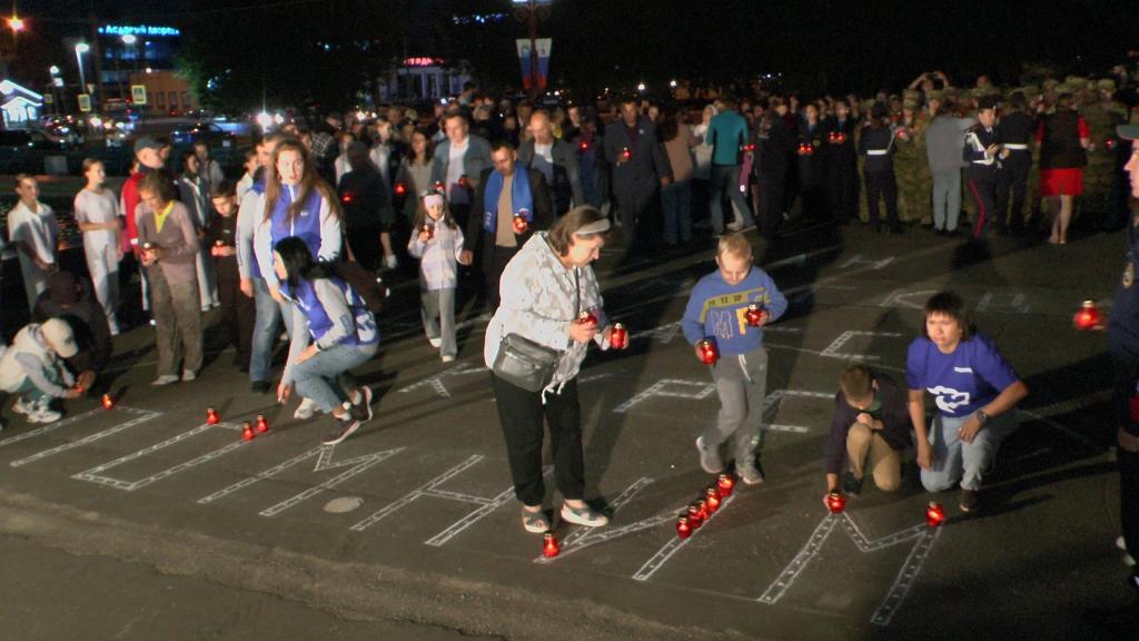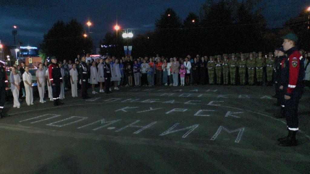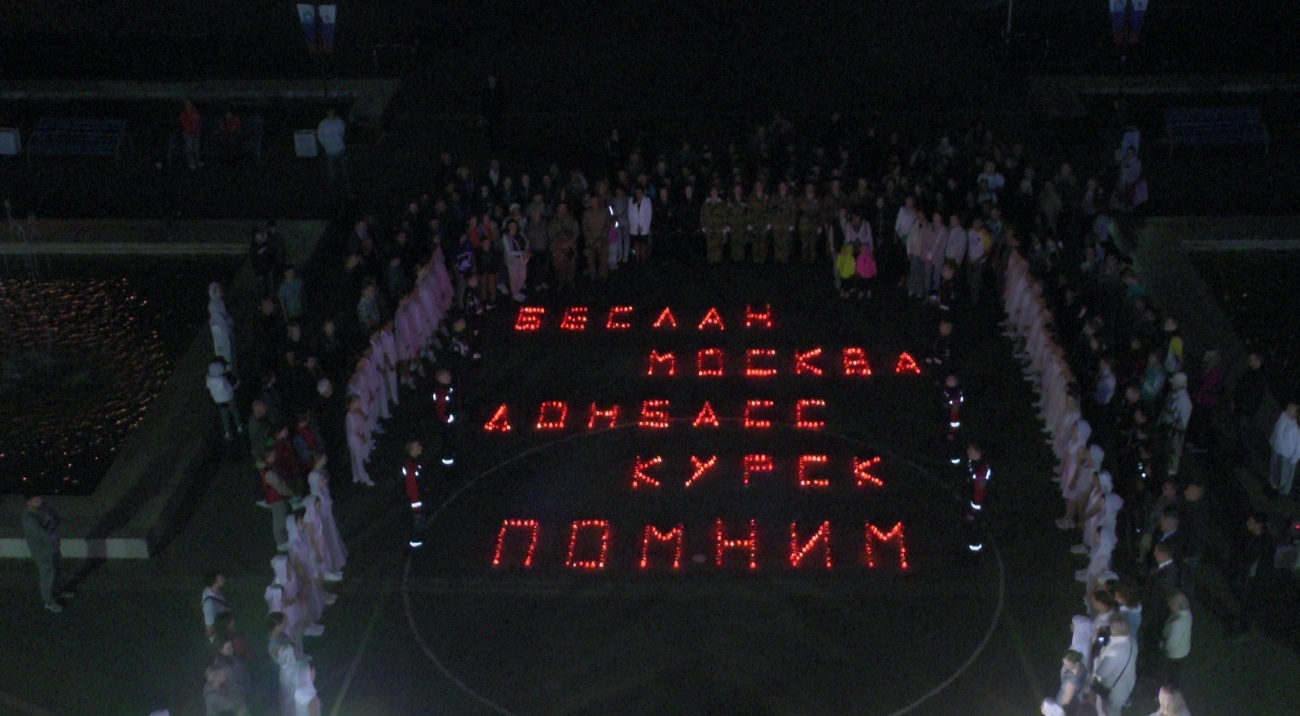Участники акции выложили свечами «Беслан, Москва, Донбасс, Курск. Помним» и почтили память погибших минутой молчания.