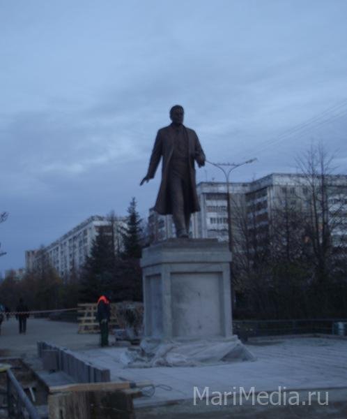 Специалисты завершают работы по установке скульптуры Аркадию Крупнякову, 2 ноября в Йошкар-Олу доставят памятник Николаю Гоголю.