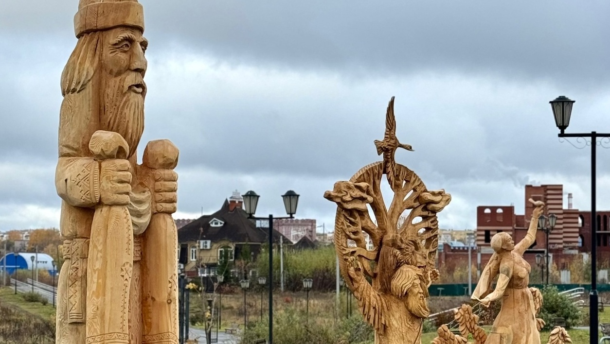Деревянные скульптуры были созданы мастерами фестиваля «Легенды народа мари», который проходил этим летом.