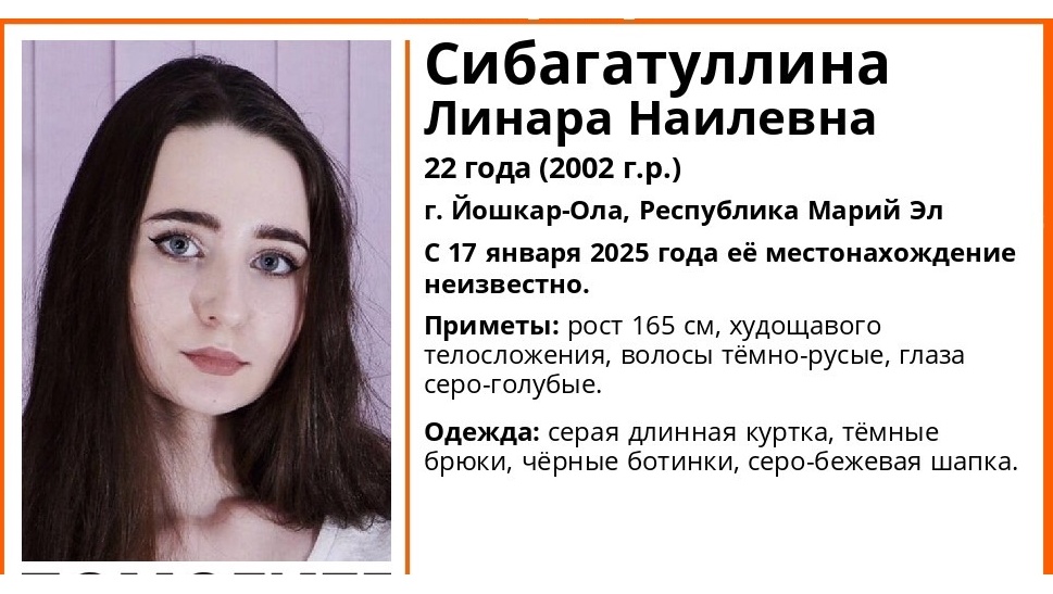 В Йошкар-Оле с 17 января неизвестно местонахождение Сибагатуллиной Линары Наилевны.