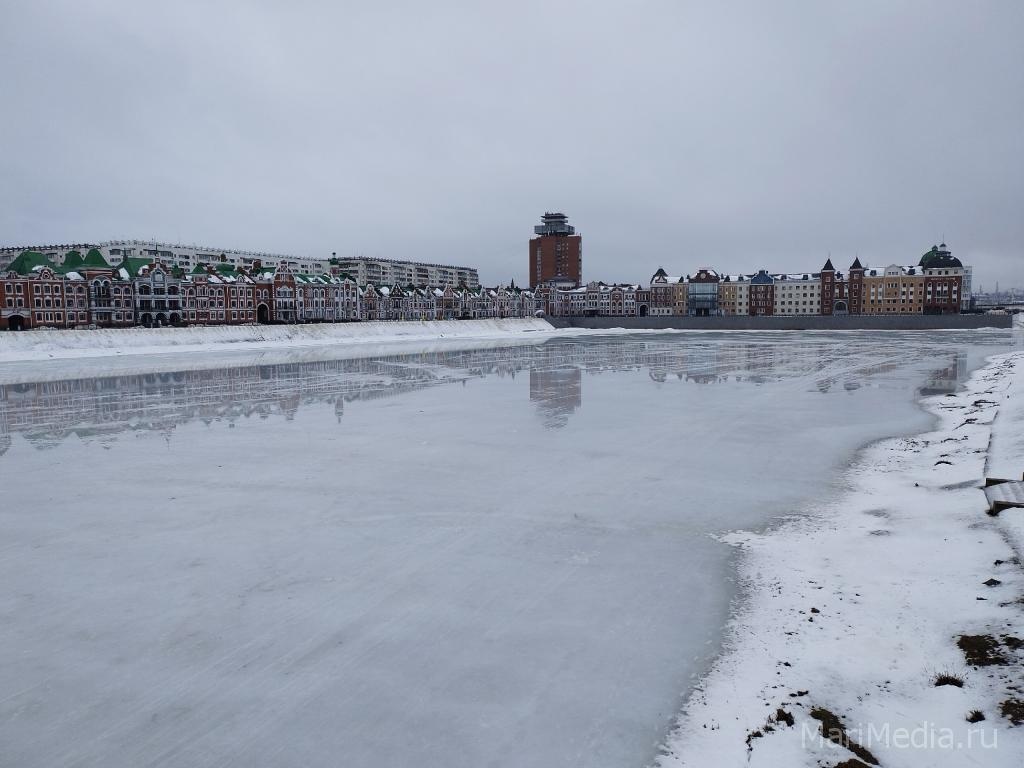В Йошкар-Оле на реке Малая Кокшага выступила вода. Толщина льда колеблется от 6 до 18 сантиметров, на отдельных участках под мостами появились промоины.