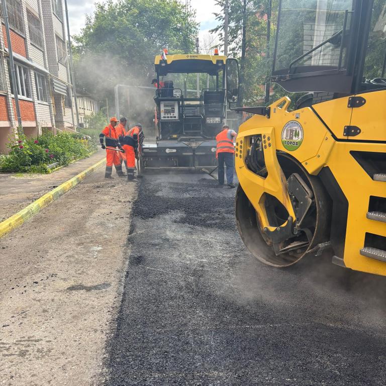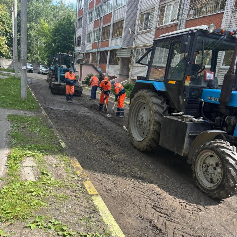 Трудятся дорожники также на проезде ул. Строителей, возле домов 42а и 44а. Он ведёт к двум детским садам. К тому же дорога не видела обновления более 40 лет.