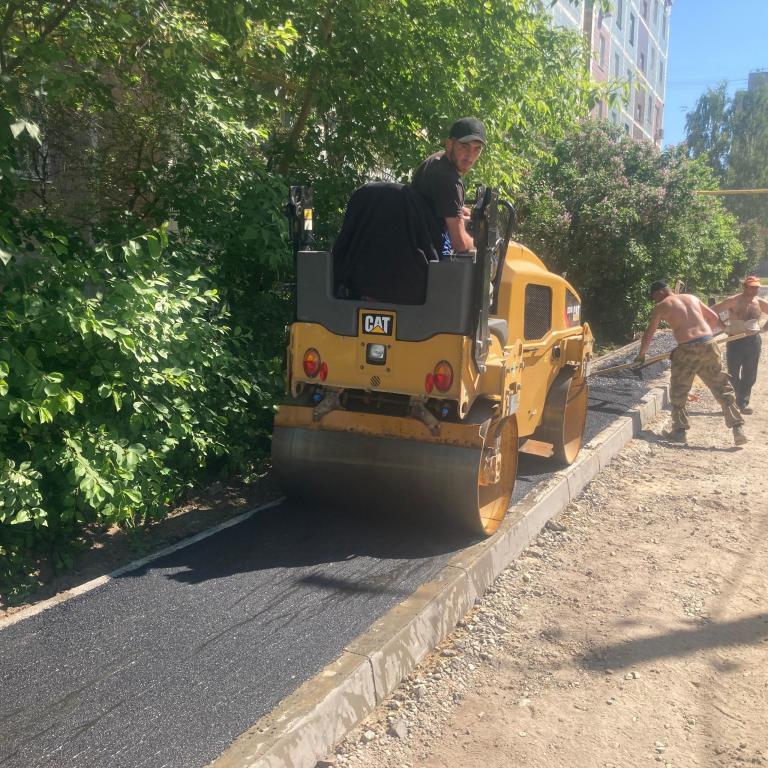 Одновременно с этим начались работы во дворе дома № 23 по ул. Строителей. А жители ул. Фестивальной, д.75 уже радуются отремонтированному межквартальному проезду и тротуару. Здесь работы уже полностью завершены.