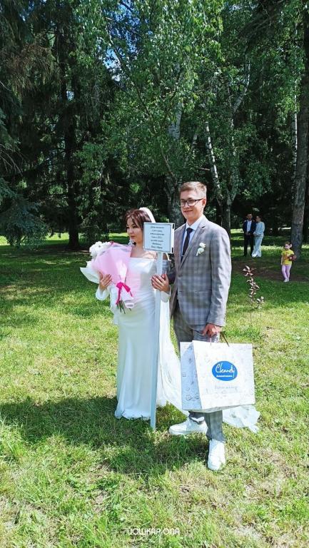 Молодожёнов поздравили министр труда и соцзащиты Марий Эл Елена Таникова, заместитель мэра Йошкар-Олы Людмила Новосёлова, заместитель главного врача по акушерству и гинекологии Перинатального центра Марий Эл Наталья Домрачева, а также родственники и друзья.