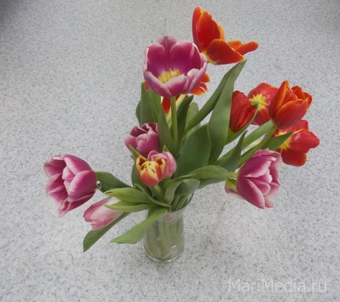 Средняя цена зафиксированная на любимые весенние цветы в салонах Йошкар-Олы - 60 рублей за штуку. По такой цене весенних красавцев отдают в салонах "Цветы столицы" (http://flowers12.marimedia.ru/), в «Меллани», в «Зеленом мире (http://zmir.marimedia.ru/)» их предлагают за 50. Интересно, что на центральном рынке эти красивые цветы не уступают по стоимости, их продают также за 60 рублей. Низкие цены на тюльпаны обнаружены в сети супермаркетов «Наш» - 29 рублей, причем разных цветов и видов.