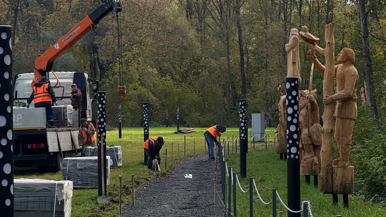 Кроме того, около скульптур «Легенды народа мари» обустраивают удобную дорожку. Вместо существующих на данный момент гравийных троп делают более долговечную брусчатку.
