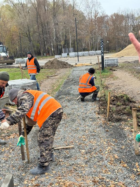 Сейчас здесь активно трудятся над дорожками. Гравийные тропы, которые были до этого, оказались непрактичными в условиях интенсивного использования. Поэтому было решено заменить их на более долговечную брусчатку.