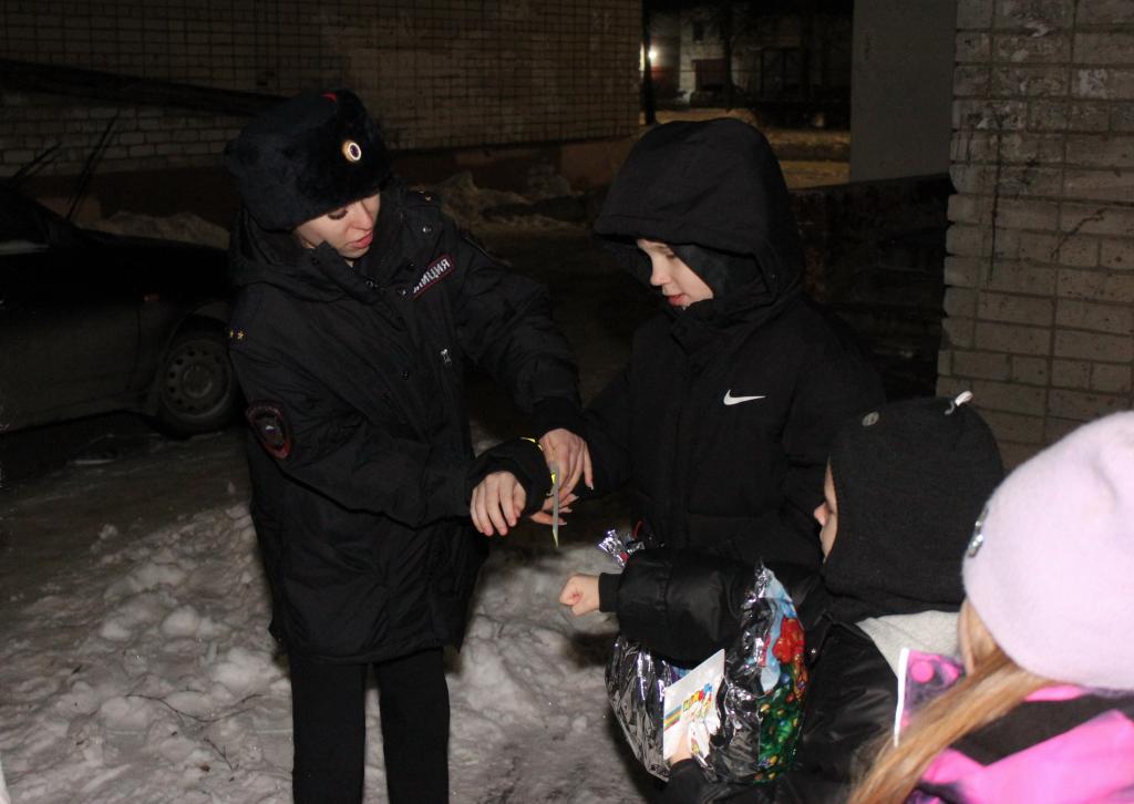 В Йошкар-Оле главный новогодний волшебник, в роли которого выступил председатель Общественного совета при МВД Роман Золотухин, вместе со Снегурочкой поздравили с наступающими праздниками юных жителей города. Вместе с инспектором по делам несовершеннолетних Управления МВД по Йошкар-Оле Ильмирой Гилязовой они посетили семьи, находящиеся в трудном жизненной ситуации.