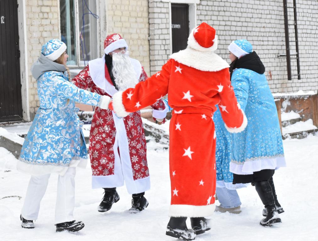 Настоящее новогоднее чудо наблюдали маленькие пациенты Йошкар-Олинской детской городской больницы им. Л.И. Соколовой. К ним в окно постучались Деды Морозы и Снегурочки.