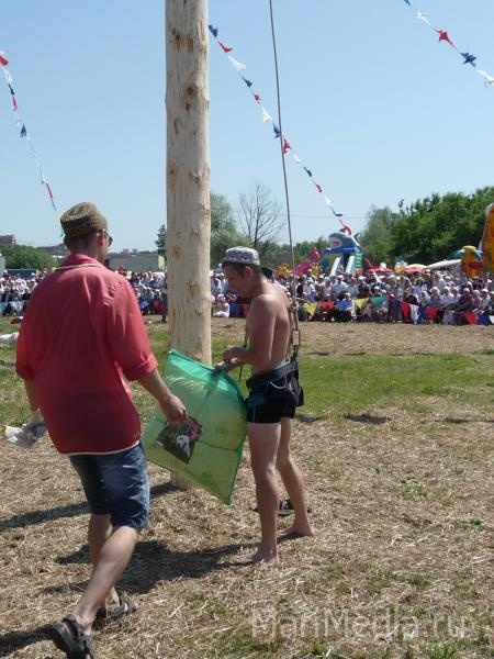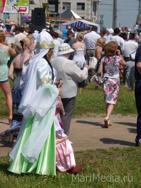 Сегодня в Парке имени 400-летия Йошкар-Олы состоялся яркий праздник Сабантуй. Он как всегда прошел весело и задорно - песни, танцы и представления йошкар-олинского этногородка Нижегородской Булгарии впечатлили горожан и гостей марийской столицы. Каждый, облачившись в национальные одежды, мог запустить стрелы из настоящего лука. Несмотря на палящее солнце и 30-градусную жару желающих было хоть отбавляй. "На ура" расходились национальные шашлыки из говядины и баранины, плов, а также сувениры. Дети развлекались на огромных надувных акулах, динозаврах и других игрушечных великанах. Все народное гуляние по традиции сопровождалось задорной татарской музыкой.