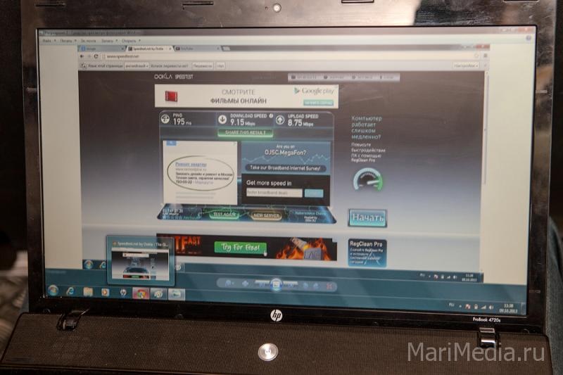 МариМедиа, 10 октября. Представители республиканских СМИ приняли участие в тест-драйве мобильного интернета, организованном компанией «МегаФон». Участники тестирования вместе со специалистами компании побывали в разных районах города и измерили скорость 3G- и 4G-интернета, причем на разных устройствах — модемах, Wi-Fi-роутерах, первом «народном» планшете «Megafon Login 3G» и новом смартфоне 4G Turbo от «МегаФона». Но сначала состоялась экскурсия в центр коммутации — «сердце» сотовой сети. Электрооборудование, километры проводов, серверы и маршрутизаторы,— лишь малая часть того, что позволяет нам разговаривать по телефону с близкими и родными, а также скачивать необходимую информацию во Всемирной паутине.