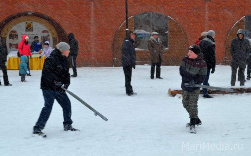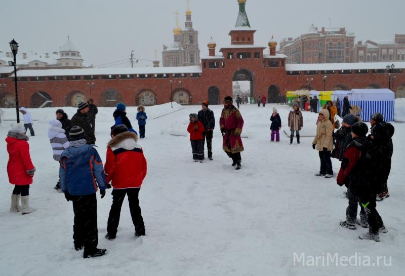 МариМедиа, 7 декабря. Организаторы народных гуляний приглашали всех желающих отдохнуть на свежем воздухе. Однако, погода внесла свои коррективы – шел снег, мела метель. Поэтому в Царевококшайском Кремле собрались самые стойкие горожане.