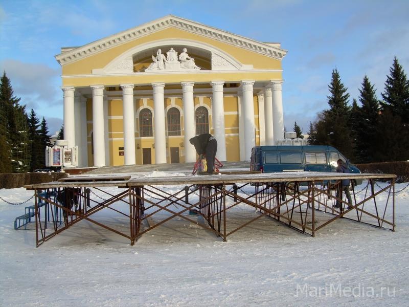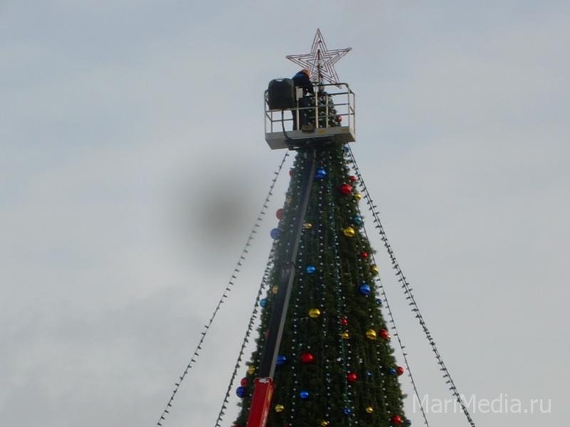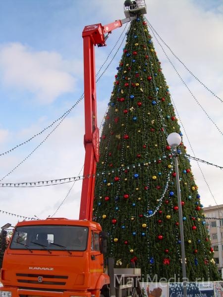 МариМедиа, 19 декабря. На площади им.В.И.Ленина заканчиваются работы по оформлению главной ели республики. Сегодня «новогодней» красавицей занимаются электрики, специалисты подключают гирлянды, проверяют световое оформление.