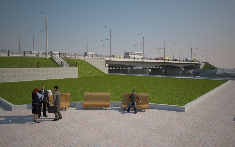 Пешеходная часть дороги будет уложена аналогичными материалами. Ограждения моста изготовят из железобетонных блоков высотой чуть более метра со стороны существующего моста и высотой 0,8 метра со стороны тротуара. Их удерживающая способность — 400 кДж. На металлических опорах моста предусмотрена установка освещения и кабеля МВД республики для видеонаблюдения.