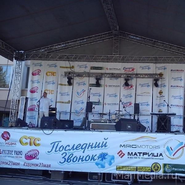 МариМедиа, 22 мая. Сегодня в 15:00 начался монтаж сцены, где будут происходить все самые интересные события «Последнего звонка-2014». Именно для этого сегодня было перекрыто движение на улицах, прилегающих к площади им. Ленина. Специалисты настраивают звуковое оборудование и устанавливают видеоэкраны.